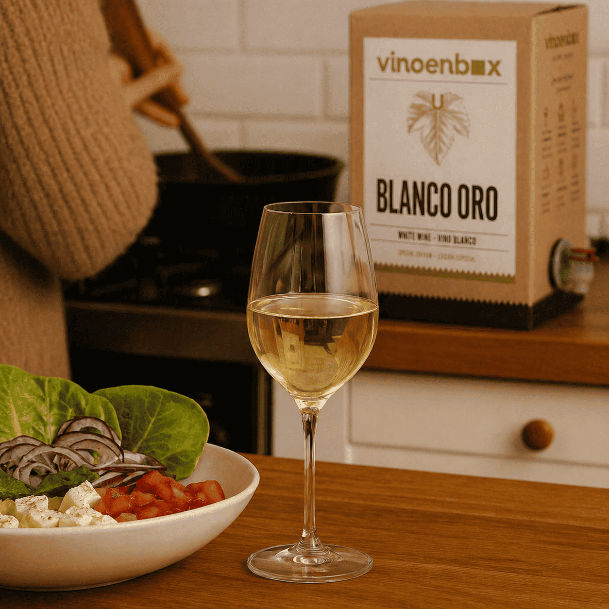 Pero Vino Oro no se queda solo entre fogones. Su calidad y armonía hacen que también pueda servirse y disfrutarse en copa, convirtiéndose en un vino tan útil en cocina como agradable en la mesa.
